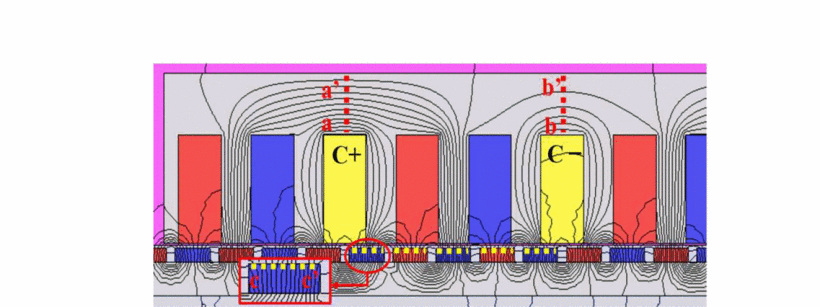 Investigated different split tooth structures in linear permanent magnet Vernier motors through finite element analysis, comparing non-split-tooth, two-split-teeth, and three-split-teeth configurations to optimize thrust ripple and motor performance.
